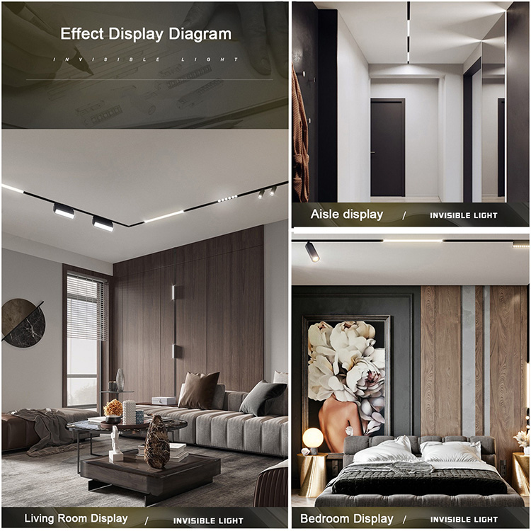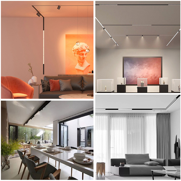 Smart magnetic track lights are highly adaptable. By combining different lighting modules—such as spotlights, linear lights, and wall washers—designers can create customized lighting effects for: